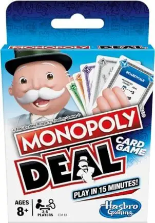 ننسى لعبة البوكر! Monopoly Deal هي أفضل لعبة بطاقات سفر لعبناها على الإطلاق. يعمل مع 2-5 لاعبين ويضمن أيامًا سعيدة.
