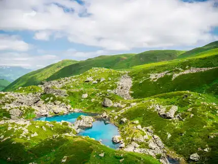 بعد الصعود الأول، يصبح مسار الهضاب والمسار سهلاً للغاية. اتبع المتنزهين الآخرين عبر العشب الشجيرات الخضراء والبحيرات الصغيرة إلى جوهرة التنزه، بحيرات كورولدي. إذا كنت ترغب في الاستمتاع بالمزيد من المناظر الخلابة، قم بتسلق Koruldi Ridge.